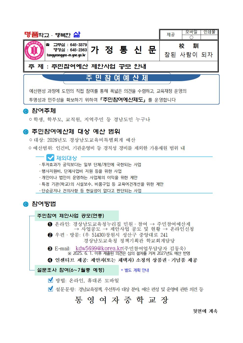 가정통신문(2025년도 주민참여예산 제안사업 공모 안내).hwp